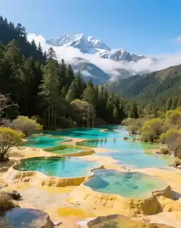 The Huanglong Scenic and Historic Interest Area in Sichuan, China, is a breathtaking UNESCO World Heritage Site known for its colorful pools, snow-capped peaks, and ancient forests. Stretching through a beautiful mountain valley, Huanglong looks like a golden dragon winding across the land — that’s how it got its name, meaning “Yellow Dragon.” The area is famous for its stunning terraced limestone pools filled with turquoise, green, and golden waters that sparkle under the sunlight. Visitors can walk along wooden paths surrounded by waterfalls, hot springs, and diverse wildlife, including the giant panda and golden snub-nosed monkey. In autumn, the valley becomes even more magical with red and gold leaves reflecting on the clear pools. The air is fresh and pure, making it a peaceful escape for nature lovers. With its mix of natural beauty and cultural legends, Huanglong is truly one of China’s most enchanting mountain wonders — a place where nature paints its masterpiece.