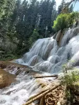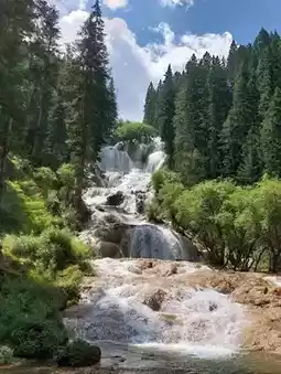 Zhaga Waterfall in Sichuan, China, is a stunning natural wonder known as the “First Waterfall of Jiuzhaigou.” Surrounded by lush forests and mountains, it cascades from a high cliff, creating misty rainbows and a powerful roar that echoes through the valley. The water flows from the Zhaga River, forming crystal pools below where visitors can feel the cool breeze and freshness of nature. Wooden walkways make it easy to admire the view from different angles. Peaceful yet majestic, Zhaga Waterfall is a perfect spot to experience the pure beauty and strength of Sichuan’s natural landscape.