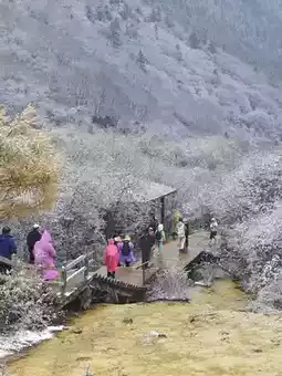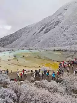 Stay nearby, and don’t go to Songpan!!! The bus 🚌 from Songpan to Huanglong is suspended due to road construction everywhere. Chuanzhusi is also not recommended because of traffic jams. If you arrive late, the cable car entrance 🚡 can have 2-3 hour queues. If that happens, it’s recommended to hike up the mountain; you can reach halfway in 2 hours, and the scenery is beautiful 🎉.