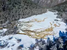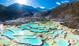 Huanglong is renowned worldwide for its grand and unique travertine landscapes, earning it the title of 'Fairyland on Earth.' The travertine formations stretch through the valley like a golden dragon cascading down from the snowy peaks, creating a breathtaking spectacle.