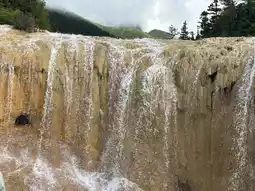 💦 Nuorilang Waterfall: Majestic calcified waterfall 🌈, water curtain hanging like a pouring Milky Way 🌌, panoramic view fully visible!