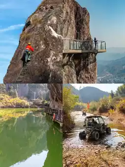 Flying Carpet——as a tool to climb the mountain, you can reach the top of the mountain in 10 minutes. Glass Walkway——the glass walkway on the high cliff is like walking on clouds Glass Bridge (Chongling Glass Walk)——nearly 200 meters high, built between two mountains Glass Corridor——the characteristic suspension bridge is 188 meters long, if you get up early, you can see the sunrise, you can also choose off-road vehicles, water bumper cars and other projects to experience. Here, you can release stress and enjoy the fun of outdoor sports. If you have a Via Ferrata: friends who like challenges can rush, walk on the eaves, exciting and fun! There is a children's playground: magic flying cars, spinning flying chairs, etc., don't miss it for family trips~