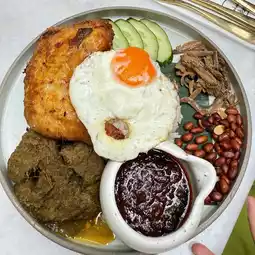 savored their full breakfast, a perfect harmony of sourdough, creamy scrambled eggs,homemade bacon, hearty sausage, and their signature harissa that elevated every bite.