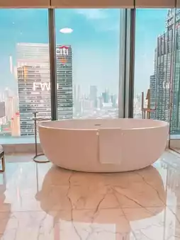 🛀 Massive Bathtubs: Soak, sip, repeat → Bubble baths with skyline views