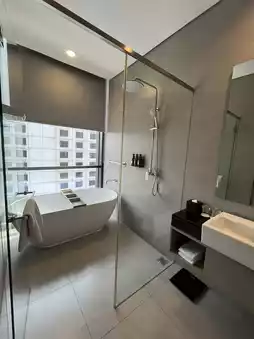 Offering exclusive comfort with modern design, spacious rooms, and five-star hotel facilities including semi-outdoor and indoor swimming pools, a 24-hour fitness center, and private balconies with stunning city views.
