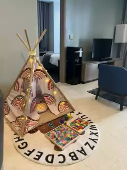 Featuring a modern swimming pool, elegant rooms, a 24-hour gym, and a room cinema to pamper your little ones.