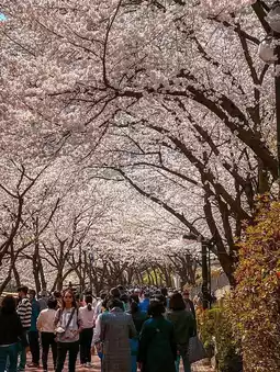 Most people stay in Seoul or surrounding area, but some of the absolute best cherry blossoms are in places less visited. If you want to see something truly spectacular, head down to Gurye or Hadong for literally km and km of pink trees.
