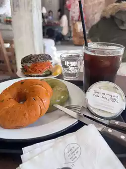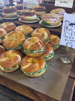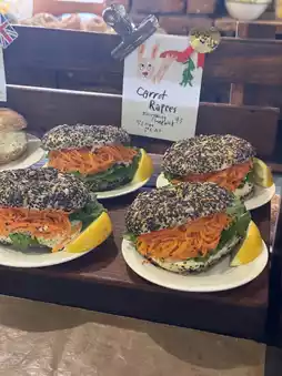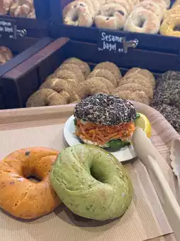 I've always wanted to try London Bagel, and finally I was able to visit! When you enter the store, there are many different types of bagels lined up, so it's fun to choose one. I ordered the Carrot La Pace Bagel. It is topped with plenty of shredded orange carrots, and it looks appetizing. When you take a bite, the bagel is chewy and the combination with fresh vegetables gives it a very refreshing taste. The cheese inside is rich, and I was very satisfied after just eating half of it.