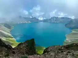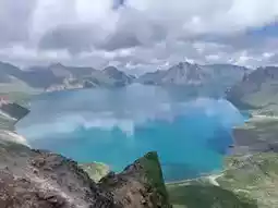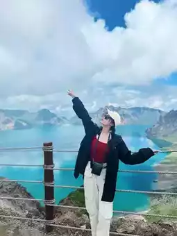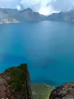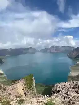 The blue color of Tianchi Lake will be different under different light and clouds.