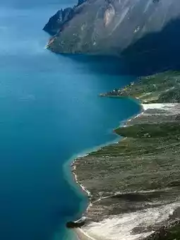 The lake at that time was like a piece of reflective glass, showing different shades of blue.