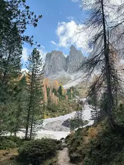 Walking the popular trail Cinema delle Odle in the Dolomites is an unforgettable experience. Start by parking at Malga Zannes (parking fee: €8), then follow trail number 36 through natural scenery and meadows. The round trip takes about 3 hours, covering a distance of approximately 8-9 km. The trail is not too challenging, making it perfect for those who enjoy mountain views and getting up close to the stunning Odle peaks. This route is not overly crowded, allowing you to fully immerse yourself in the tranquility and breathtaking scenery.