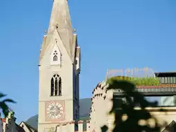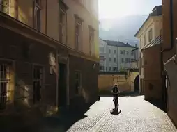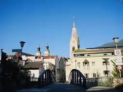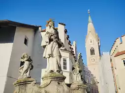 Stroll amidst pastel-colored buildings, cobblestone streets, and the town's iconic twin-towered church 🕍.