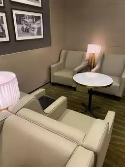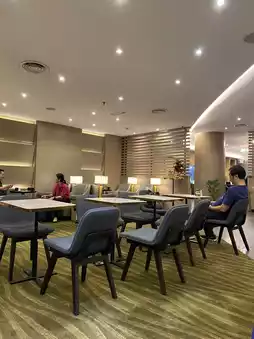 Plaza Premium Lounge at Penang International Airport offers a cozy retreat for travelers seeking comfort before their flight. The ambiance is calm and welcoming, with warm lighting, comfortable seating, and a modern yet relaxed design that makes it easy to unwind. It’s spacious enough to feel private but still intimate and quiet. The lounge features an impressive array of food — from local Malaysian favorites to international options, fresh salads, pastries, and hot dishes, all replenished regularly. Guests can also enjoy freshly brewed coffee, juices, and soft drinks. It’s a peaceful, well-equipped space to recharge and enjoy a quality pre-flight experience.