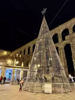 If I had to pick one place that I remember the most during my trip to Spain, I would choose the Roman Aqueduct. When I first saw the aqueduct, I couldn't close my mouth because of its grandeur. It was a shockingly large and beautiful building. It was a Roman aqueduct built by the Romans who occupied the Iberian Peninsula around 50 AD. It is said to be one of the few well-preserved aqueducts left. There was a huge tree in front of the aqueduct to celebrate Christmas. The lights weren't on when I went, but I think it must have been even more gorgeous and beautiful by now. I could feel the Christmas atmosphere even in the aqueduct.
