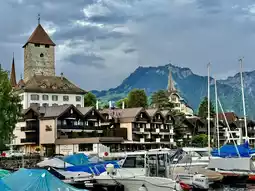 Spiez, located by Lake Thun and surrounded by mountains and vineyards, is home to a magnificent castle that towers over the town. It is undoubtedly a charming travel destination.