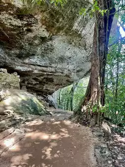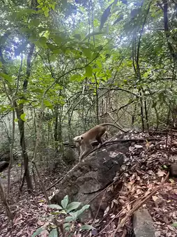 During the hike, it is easy to see monkeys swinging through the trees. There is also a Buddhist temple and a large carved Buddha.