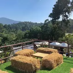 β’ Chic dome tents: We chose a tent (please specify your preferred tent type, such as a wooden balcony tent or a private bathroom with a bathtub). The tents are simply decorated but fully equipped with amenities. No need to worry about sleeping on a hard floor, as there are soft beds to make you feel like you're at home! Some areas even have netted balconies or private bathtubs for a relaxing bubble bath amidst the mountain views!