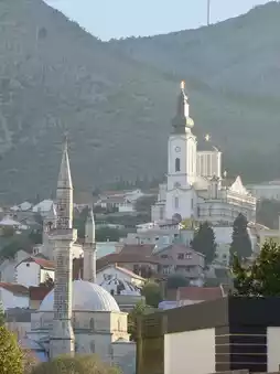 Sarajevo has the Latin Bridge, the Old Town of Baščarhia, the Yellow Fort, the Sacred Heart Cathedral, and the Gediz Husserl Beg Mosque; Mostar has the Old Bridge and the Old Town, and the Buna Fountain.