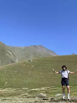 Trekking in Kazbegi was the highlight of my trip to Georgia. The 'Mount Kazbegi' trail, which starts at a unique stone statue, offered an unforgettable experience with clear streams and flocks of sheep along the way—something you don't often encounter in Korea.