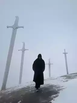 Along the hiking trail, the scent of pine blends with the chill wind, and the air carries the crisp, crisp scent of snow. Passing by an ancient Georgian church, its stone walls and wooden doors stand out against the backdrop of the mountain scenery, a solitary and solemn presence. The afternoon sun dapples the clouds, shimmering silvery white across the ice and snow. It's as if time seems stretched here, and the mountain's breath can be heard with every step.