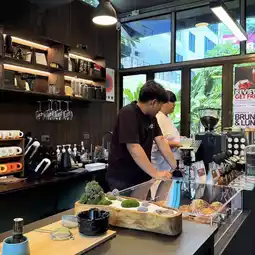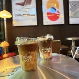 The signature menu is Coconut Matcha 🥥🍵, rich matcha with a fresh coconut aroma and a smooth sweetness. Or you can try the nutty-flavored coffee, which is equally excellent ☕🎶