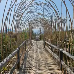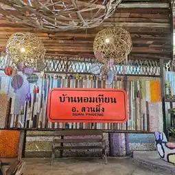 Baan Hom Thian is a famous handmade souvenir shop and has been a popular tourist attraction in Suan Phueng for a long time. This shop sells colorful scented candles, various designs, unique shapes, and inexpensive prices, making them perfect as souvenirs. The scented candles are fragrant and the shop has souvenirs, handmade accessories, and natural products. It is not only a collection of beautiful scented candles, but also has a beautiful viewpoint, a walking path, and many activities to do, such as making scented candles. There is also a delicious restaurant. At the top, there is also a coffee shop where you can sit and sip coffee while enjoying the beautiful mountain view. There is a bamboo bridge for walking and enjoying nature, and a super cool photo spot that everyone who visits Suan Phueng must check in to show off to their friends.