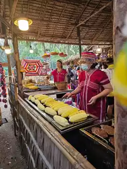 This is a market that gathers a lot of delicious food. Each shop has a unique menu. The idea of making packages, plates, or wrappings will use environmentally friendly materials. There is almost no plastic in the market.