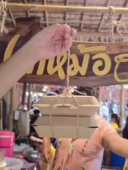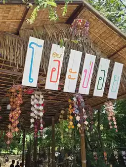 For food, there are both savory and sweet dishes. There are many to choose from, such as Khao Man Kai, Kuay Chap, Pad Thai, etc. For dessert, there are Khanom Krok, ice cream, and Thong Muan. The food is delicious and inexpensive. You can buy a variety of food and eat it. Sit on the raft next to the river. The atmosphere is very good. Another thing I like here is that they use environmentally friendly packaging. They don't use plastic. Most of the packaging is made from nature instead of plastic. I highly recommend this market. It is a real landmark of Suan Phueng. The savory and sweet dishes are delicious, inexpensive, and have many unique characteristics to remember.