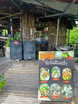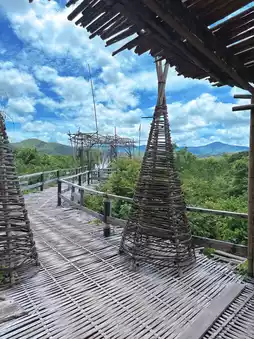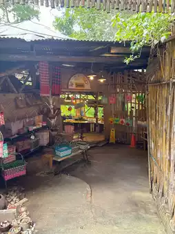 You have to pay an entrance fee of 60 baht per person, but you can exchange it for one candle. Inside, there's a restaurant, a drink shop, a photo corner, a bamboo bridge, and even a candle-making workshop. They also sell trinkets like key chains, bracelets, and other souvenirs.