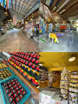 "Baan Hom Thian" is a long-standing landmark in Suan Phueng, Ratchaburi. It's been open for over 20 years, and offers a walkway leading up to the temple, showcasing OTOP products and local products from Ratchaburi. We went on a weekday, so it wasn't crowded. Usually, it's busier on Saturdays and Sundays. All the shops are open, but on the day we went, not all were open because it was a weekday. If you prefer peace and quiet, come on a weekday.