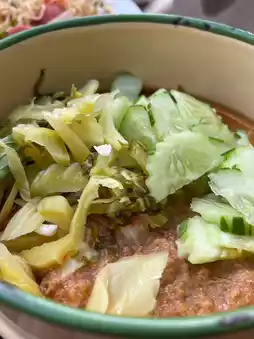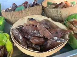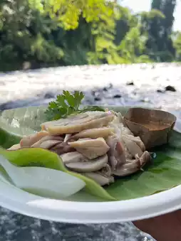 This morning market by the riverside is a must-visit whenever I visit Suan Phueng. I love the atmosphere. It's a local market where locals sell their wares, including local food and Karen music performances.