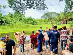 Invite to give alms to monks on a bamboo raft, walk around and find food at the market. Oh Poi Market by ลาออกแล้วบอกว่าไปเที่ยว l QUIT then GO Jul 9, 2025