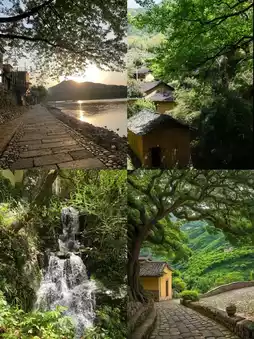 ▫️ Guyuan Painting Village: Bamboo rafting on the Ou River with green mountains reflected in the water—experience the poetry of "boating on emerald waves."