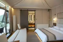 The 3106-meter glass waterslide delivers ultimate excitement, zooming through bamboo forests and cascades. The majestic waterfall view is breathtaking.