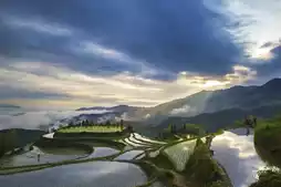 The terraced fields are most enchanting at dawn! Layers of fields emerge faintly through the morning mist, with water reflecting the colors of sunrise like a spilled palette. Climb to the "Starry Cloud Summit" viewing platform and watch as sunlight gilds the terraced fieldsâevery snapshot is a masterpiece.