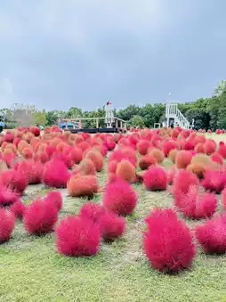 The park is very spacious, and there is an area called the Flower Hill where cosmos and kochia were in full bloom.