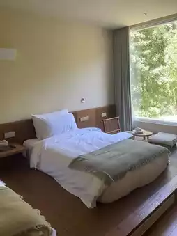The room design is simple yet warm, with solid wood furniture, Dyson hair dryer, smart bathroom, and perfect details. I love the tatami room the most. I can use the remote control to open the curtains in the morning, lie on the bed and watch the morning mist in the valley, as if I am sleeping in the clouds.