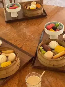 The cafe is very exquisite, next to a lake, and the restaurant's infinity pool is also very photogenic