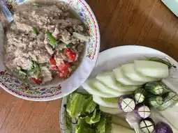 Oh my, the feeling while eating is like being surrounded by kind-hearted relatives, ready to talk about everything, but every dish is perfect, like eating and gossiping, so delicious that I want to add two more bowls of rice! When biting the Pla Tapo with fish sauce, it is crispy and injects in the mouth, fragrant and sweet, the Chu Chee sauce and bamboo shoots are spicy, the rice is gone in the blink of an eye, I must say it's worth it, I want to rush into this review myself.