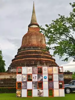 Wat Sra Sri is located northwest of Wat Mahathat. It is an important historical site situated on a large island in the middle of the water called "Traphang Trakuan." It also boasts some of the most beautiful views. Highlights of this temple include the main Sri Lankan-style chedi. In front of the large viharn (ordination hall), a stucco Buddha image in the Mara-Vijaya posture is enshrined. A smaller chedi, in a blend of Srivijaya and Sri Lankan styles, is located to the south. It features niches depicting Buddha images in all four directions. A small island in front houses the ubosot (ordination hall). This symbolizes Buddhist belief in the use of water as a symbol of purity, marking a boundary for monks to perform religious rites, known as the Nathi Sima.
