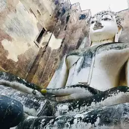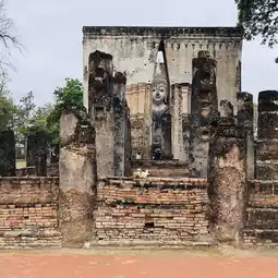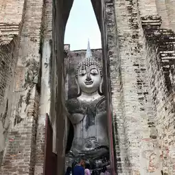 If you visit Sukhothai Historical Park, you'd be missing out on a stop at Wat Sri Chum! ✨ The highlight here is Phra Achana, a large Buddha image in the Mara-Vijaya posture enshrined in an ancient pavilion surrounded by tall walls. Standing there, you can feel the tranquility, holiness, and mysticism. 🙏