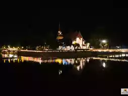 Wat Traphang Thong, Sukhothai Province — Mesmerizing at night, with lights reflecting off the sacred pond. 🕯️🏯