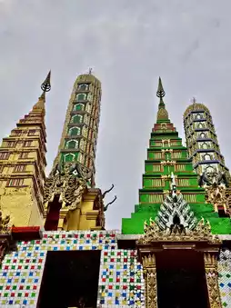 ✨️Wat Tham Mongkhon Thao Bun Nonthawit (Luang Pho Wiriyang) Worship 🙏 the green jade Buddha statue named Phra Phuttha Mongkhon Thamma Sri Thai, the largest green Buddha statue in the world. Behind it is a jade Guanyin statue. You can walk to the chapel and see the architecture of the Western-style window arches. The interior is decorated with Stainglass. See the tallest pagoda in Thailand.