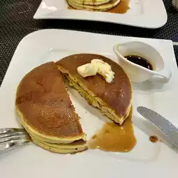 I ordered the tarako pasta, which had a rich and savory umami flavor, perfectly balanced with a creamy texture. For dessert, I couldn’t resist trying their hotcakes—thick, fluffy, and just the right amount of sweetness. Such a satisfying meal!