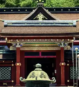 Most striking are the vermilion lacquer railings of Kagura Hall—artisans inlaid phoenix feathers using the "Extreme Color" technique to create a gradated sheen. When the afternoon sun slants across the building, it casts a dazzling halo of light and shadow on the ground.