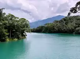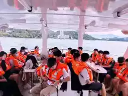 ·The pier itself is beautiful, with the blue sky and white clouds reflecting off the lake and mountains, making it a perfect photo op. #SunMoonLakeCruise#ShuishePier. The boat 🛥️ was clean, with outdoor seating for about 30 people, and the indoor sofas were also very comfortable. (The life jackets 🦺 were also clean.)