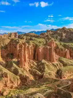 Visit Binggou Danxia in the morning, then head to Pingshanhu Grand Canyon (1.5-hour drive) in the afternoon to experience the rugged "underground canyon." Return to Zhangye city in the evening and enjoy gray bean soup and fried bola at Ganzhou Market to end a fulfilling day.