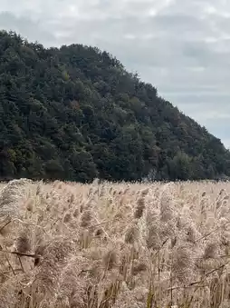 In the autumn season in Korea, if you don't know where to go or if you're tired of Busan, I recommend coming to Chuncheon. You can take the high-speed KTX train here. Once you arrive at the station, take a bus for about 20 to 30 minutes to reach this place. It's a bay with a lot of reeds and a very spacious area, perfect for visiting in the autumn season, especially around November. The wide space makes it easy to find photo spots.