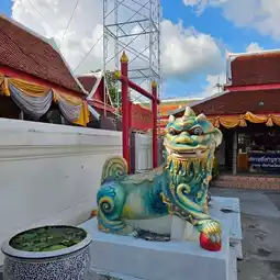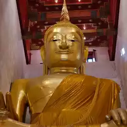 Wat Pa Lelai Worawihan, Suphan Buri Province ð is a major temple in the province and a must-visit tourist attraction for those visiting to pay respects and make merit. The main highlight is the enormous Luang Pho To (Luang Pho Pang Pa Lelai) statue inside the viharn. Murals depicting the story of Khun Chang Khun Phaen surround the viharn, and the Khun Chang compound, built in the style of a traditional wooden house, is also located. There's also a must-see market selling local products, a pavilion for Luang Pho Thir, and a monument to Khun Phaen and Nang Phim. Most visitors and tourists alike flock to pay their respects to Luang Pho To, a massive 23-meter-tall Buddha statue in the Pa Lelai pose. This stunning U Thong period sculpture is also a must-see. The temple also features beautifully illustrated murals depicting the story of Khun Chang Khun Phaen, accompanied by accompanying explanations.