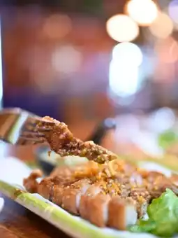 🍣A must-try highlight is the corn som tam with a well-rounded taste, sour, sweet, salty, and spicy. In addition, the grilled pork neck is soft and juicy, grilled to perfection, not too dry. Dipping it with the delicious jaew sauce is the best. Other menus such as spicy pork bone soup or pork larb are equally delicious. The food prices are reasonable, not too expensive when compared to the quality and quantity received. If you visit Suphan Buri, Zaab Yok Krok is another Isan restaurant that you should not miss under any circumstances.